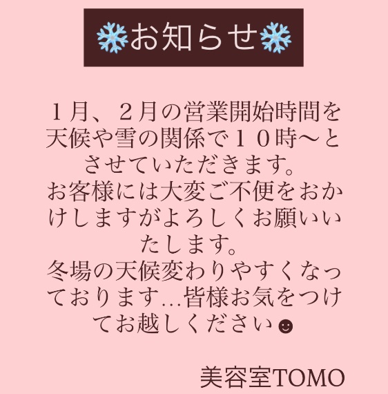 いつも美容室TOMOにご来店いただきありがとうございます。